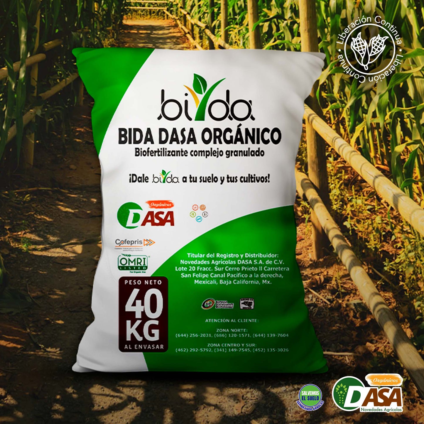 Bida es un biofertilizante orgánico complejo granulado único en México, diseñado para proporcionar una nutrición completa a tus cultivos. Este producto combina elementos macro y micronutrientes, calcio, materia orgánica, sustancias húmicas, y una alta concentración de microorganismos benéficos que mejoran la salud del suelo y protegen tus plantas contra plagas y enfermedades.